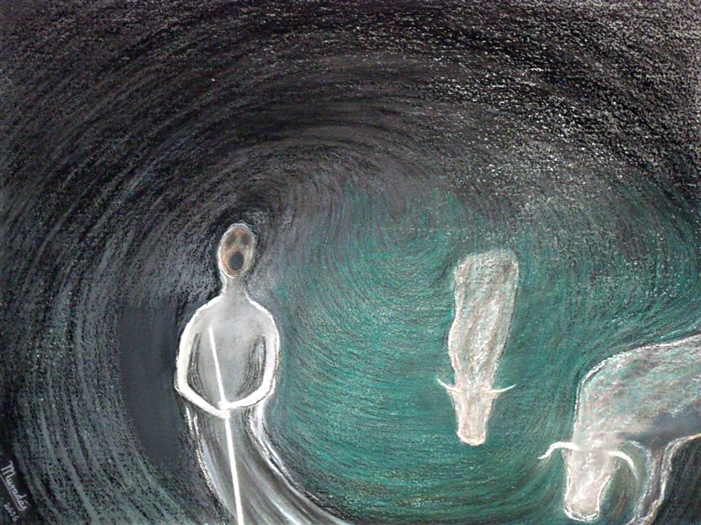 Pastel y acuarela sobre papel, 74 x 55 cm